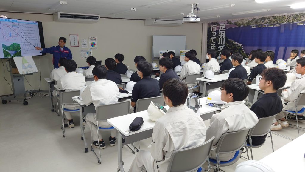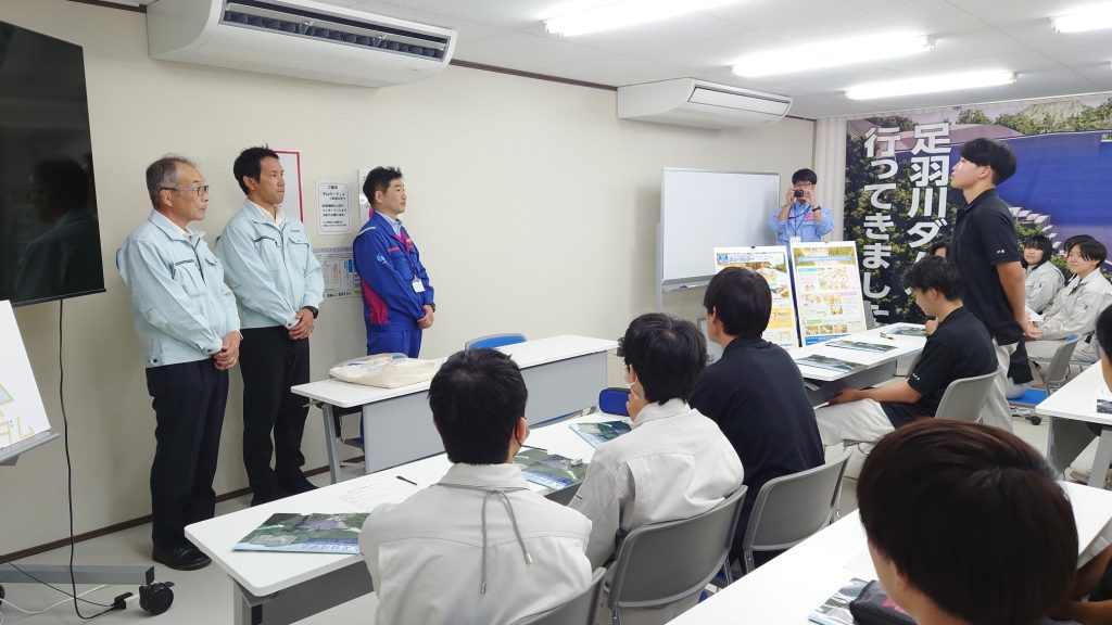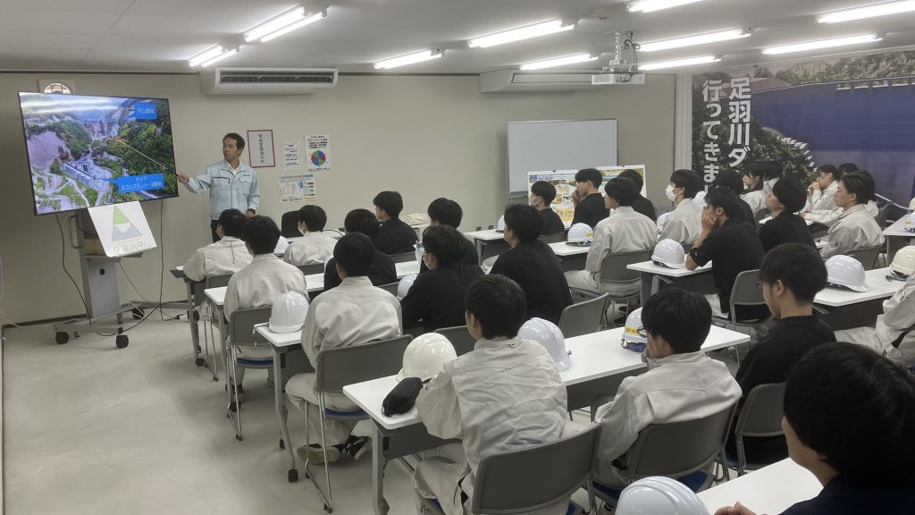 2023年10月18日、近畿地方整備局並びに清水建設JVの皆様のご協力のもと、福井工業高専の学生の皆様に近畿地方整備局足羽川ダム工事事務所主催のダム見学会に参加いただきました。