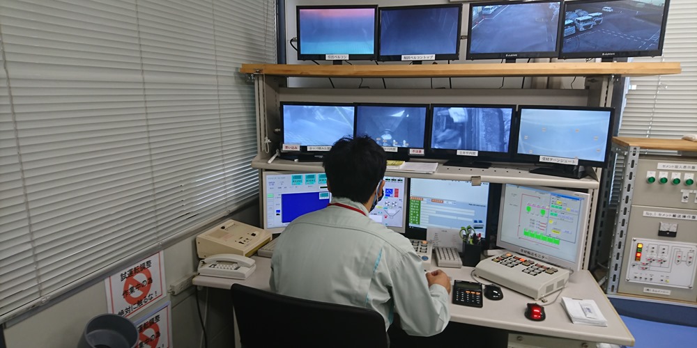 操作室にて「プラント内で機械が正常に動作しているか」「コンクリートがきちんと練り上がっているか」等をモニターを見ながらコンピューターで制御・監視します。