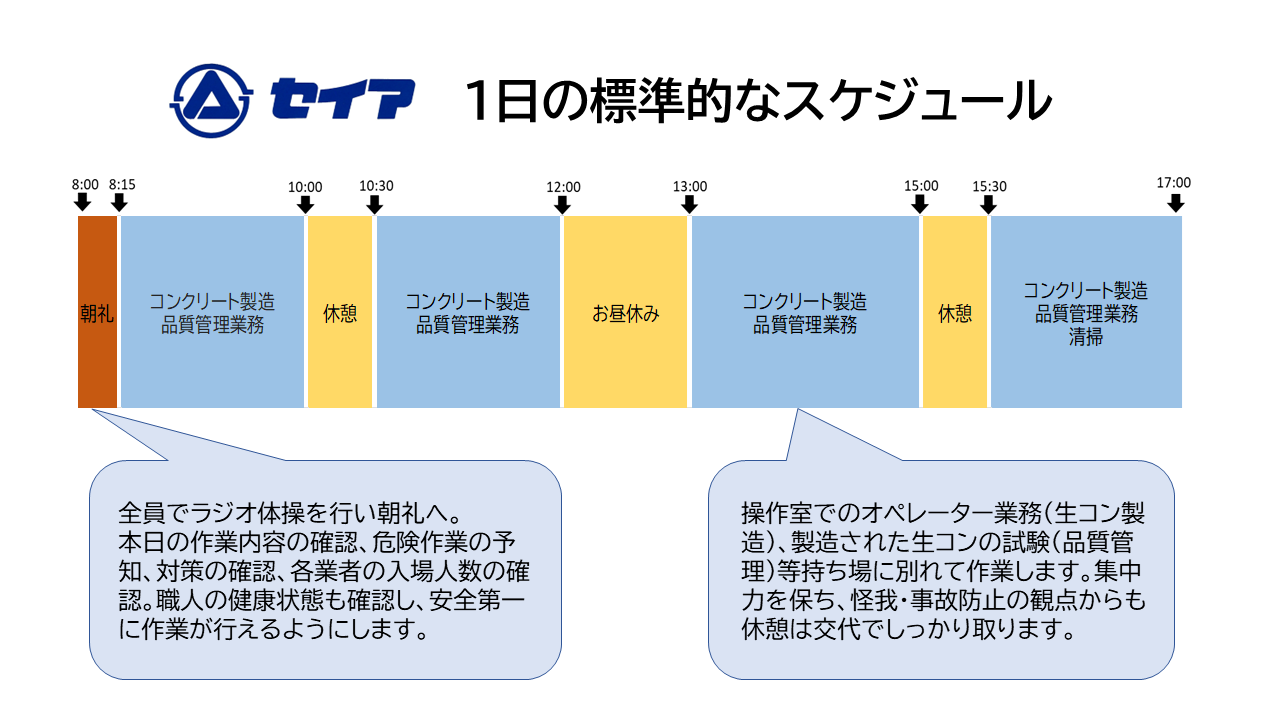 セイア作業所の標準的な1日の流れとしては、図のようなスケジュールとなります。