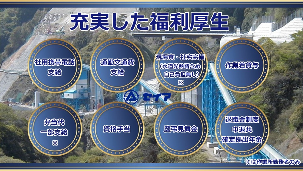 水道光熱費含め自己負担無しの現場寮・社宅完備(※)をはじめ、充実した福利厚生で皆さんの生活をバックアップ致します。